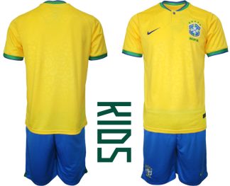 Otroški Nogometna dresi kompleti Brazilija Domači SP 2022 z lastnim imenom