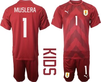 Otroški Nogometni dresi nogometni Urugvaj Vratar Gostujoči SP 2022 Kratek Rokav + Kratke hlače MUSLERA 1