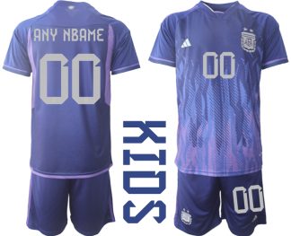 Poceni Otroški Nogometni dresi Argentina Gostujoči SP 2022 Kratek Rokav + Kratke hlače