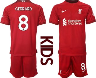 Replika Otroški nogometni dresi kompleti Liverpool Domači 2023 Kratek Rokav + Kratke hlače GERRARD 8