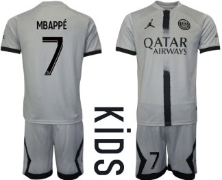 Otroški Nogometna dresi Paris Saint-Germain PSG Gostujoči 2023 Kratek Rokav + Kratke hlače MBAPPÉ 7