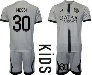 Otroški Nogometna dresi Paris Saint-Germain PSG Gostujoči 2023 Kratek Rokav + Kratke hlače MESSI 30