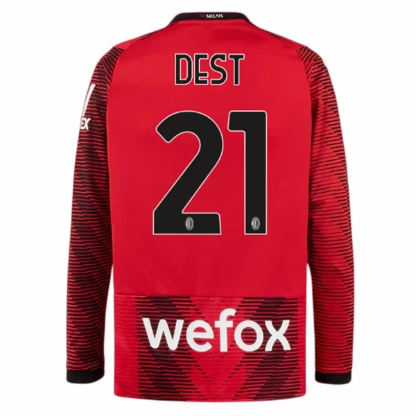 Poceni Moški Nogometni dresi AC Milan Domači 2023-24 Dolgi Rokav tisk Dest 21