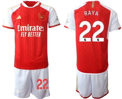 Poceni Moški Nogometni dresi kompleti Arsenal Domači 2023-24 rdeča bela David Raya 22