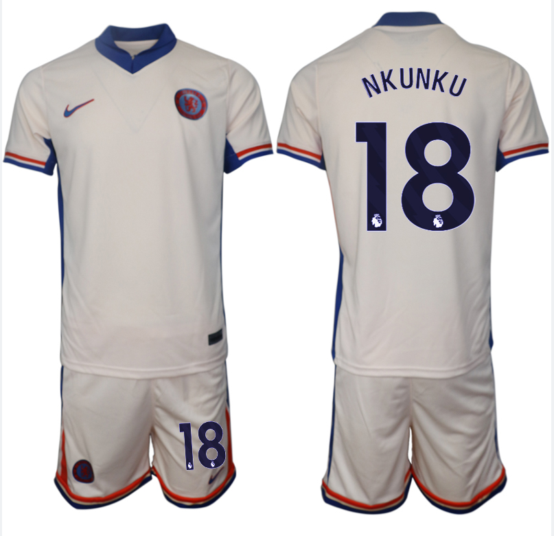 Poceni Moški Nogometni dresi kompleti Chelsea bela Gostujoči 2024-2025 Christopher Nkunku 18