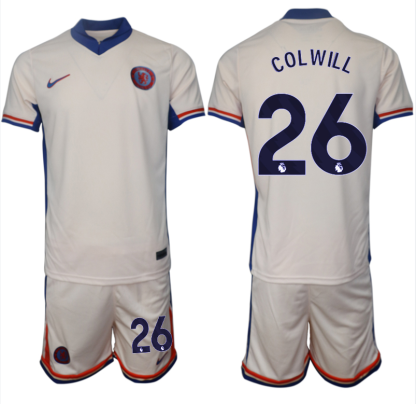 Poceni Moški Nogometni dresi kompleti Chelsea bela Gostujoči 2024-2025 Levi Colwill 26