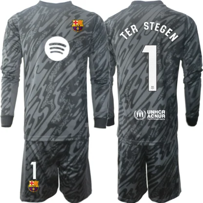 Poceni Moški Nogometni Dresi Kompleti FC Barcelona Vratar 2024-25 črna Dolgi Rokav Marc-Andre ter Stegen 1