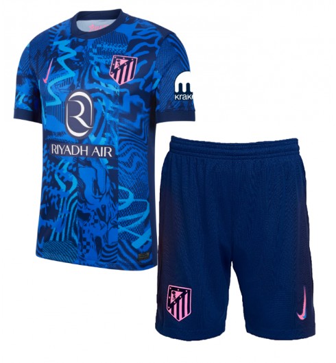 To je tretji dres Atletico Madrid v gosteh za sezono 2024/25. “Blue Void” in “Pink Ray” izstopata na dresu Atletico Madrid z živahnim dizajnom, ki uteleša duh mota “Together We Rise”, v skladu z našim klubom. V bistvu smo vedno pripravljeni na soočenje z novimi neustrašno izziva. Nogometni dres Atletico Madrid ima ikonični logotip “Swoosh” in pomemben simbol zgodovine: Neptunov trizob.