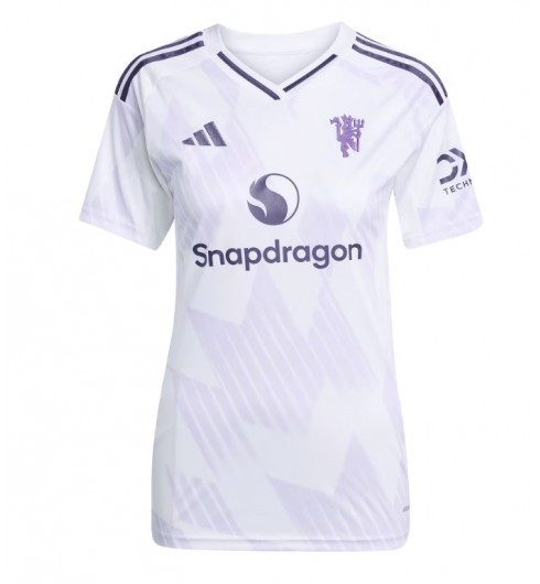 Gostujoči dresi Manchester Uniteda za sezono 2025/26 ima vijolične detajle: tri črte na ramenih, grb kluba z motivom hudiča in logotip ekipe so v istem odtenku. Bel V-izrez z vijolično obrobo ustvarja eleganten in šik dizajn, ki združuje celoto.