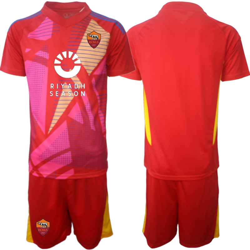 Poceni Otroški Nogometni dresi za otroke AS Roma Vratar 2024-25 rdeča z imenom