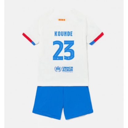 Poceni Otroški Nogometni dresi Barcelona Gostujoči 2023-24 Kratek Rokav + Kratke hlače Jules Kounde 23