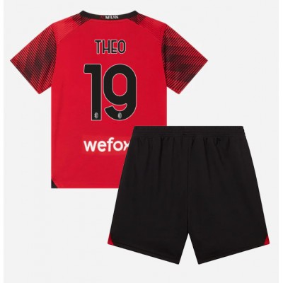 Poceni Otroški Nogometni dresi kompleti AC Milan Domači 2023-24 tisk Theo Hernandez 19