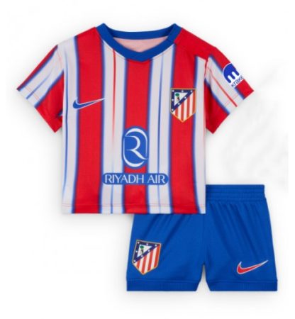 Domači dres Atletico Madrid 2024/25 ima nov dizajn s klasičnimi rdečimi in belimi črtami. Bele črte na rdečem ozadju. Znotraj belih črt so izmenjujoče se modre in bele črte, ki rahlo bledijo proti spodnjemu robu. Prvotni emblem je bil vzet iz grba Madrida in vrnjen po reviziji leta 2017.