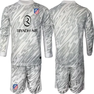Domači dres Atletico Madrid 2024/25 ima nov dizajn s klasičnimi rdečimi in belimi črtami. Bele črte na rdečem ozadju. Znotraj belih črt so izmenjujoče se modre in bele črte, ki rahlo bledijo proti spodnjemu robu. Prvotni emblem je bil vzet iz grba Madrida in vrnjen po reviziji leta 2017.