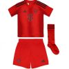 Domači dres Bayern München 2024/25 ima klasičen črtast dizajn, vendar z rahlim zasukom. Vijugaste črte so sestavljene iz treh odtenkov rdeče in so sestavljene iz majhnih diamantov, ki prispevajo k DNK kluba. “Trije rdeči” dresi ne odražajo le identitete kluba, ampak tudi simbolizirajo, da je Bayern edina nemška ekipa, ki je v isti sezoni osvojila trojno krono: ligo, ligo prvakov in nemški pokal.