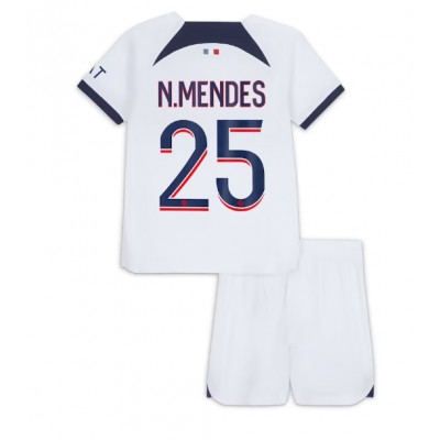 Poceni Otroški Nogometni dresi kompleti Paris Saint-Germain PSG Gostujoči 2023 2024 Nuno Mendes 25