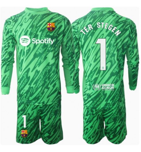 Poceni Otroški Nogometni Dresi za otroke Barcelona Vratar Gostujoči 2024-25 Ter Stegen 1