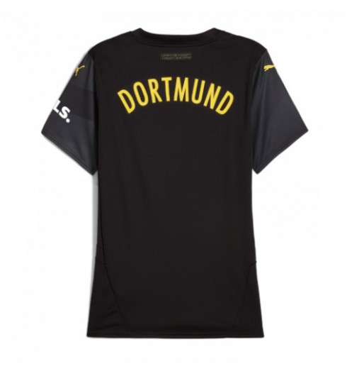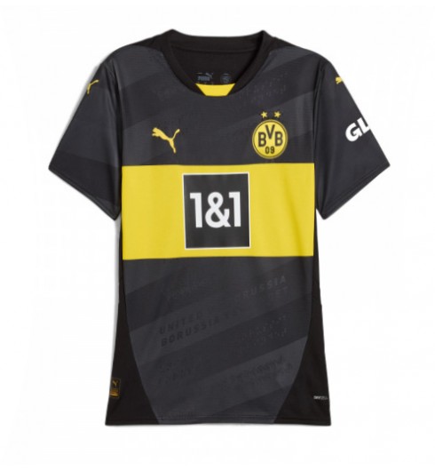 Nogometni dresi Borussia Dortmund Gostujoči 2024-25 odlikujejo edinstven dizajn v klasični črni in rumeni barvi s črtami na sprednji strani in subtilen dizajn. Klubski moto “United by Dortmund” se ponavlja na nogometnem dresu Dortmunda v besedilu, znakovnem jeziku in Braillovi pisavi. Pomenljiv del dortmundske majice je, da ljudi poziva, naj se uprejo rasizmu, zmanjšajo sovražnost, seksizem in diskriminacijo LGBTIQ* ter podprejo odprto družbo. Marco Mueller, višji direktor produktnega vodstva ekipe za športna oblačila pri PUMA, je dodal: “Komplet Dortmund 24/25 je močan odraz predanosti Dortmunda povezovanju s širokim krogom oboževalcev. Ta komplet Dortmund je zasnovan tako, da slavi vsakega oboževalca in združuje skupnost.”