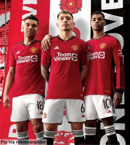 Adidas Man United dres 2023-2024 združuje klasično rdečo glavno barvo s črnim logotipom in tremi črtami ter belimi detajli. To je prvič, da je Adidas od sezone 2019-2020 uporabil črno kot sekundarno barvo. Uradno je rdeča znana kot “Team Collage Red.”