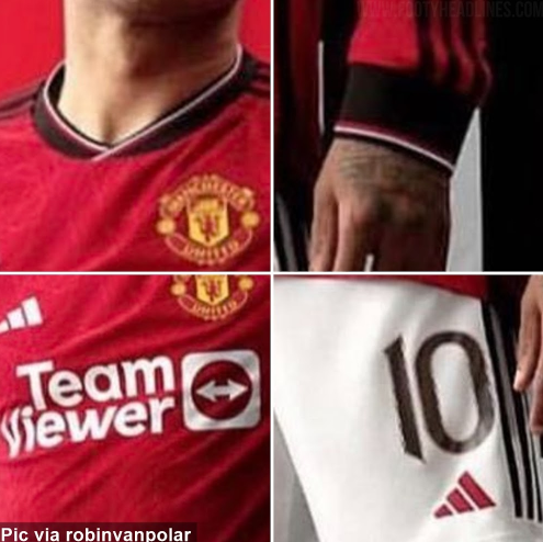 POSODOBITEV: Vse podrobnosti o domači opremi Adidas Manchester United 2023-2024 smo dobili v tem videu na vietnamskem kanalu nogometne opreme “Nogometni dres – Vietnam Zone”. Emblem vrtnice Lancashire se nahaja na notranji strani ovratnika, tudi v grafični obliki.