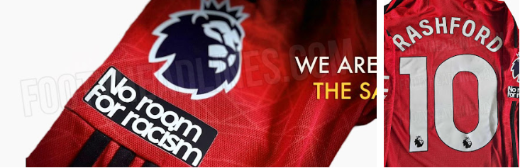 Glavni sponzor DXC Technology, ime in številka pokrovitelja na rokavu ter logotip so vsi beli. Logotip sponzorja TeamViewer je bil posodobljen, čeprav bo Nogometni dresi Manchester United morda začel sezono z novim sponzorjem.