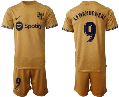 Replika Moški nogometni dresi kompleti Barcelona Gostujoči 2023 Kratek Rokav + Kratke hlače LEWANDOWSKI 9