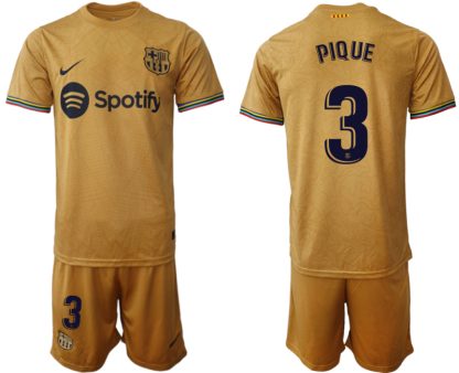 Replika Moški nogometni dresi kompleti Barcelona Gostujoči 2023 Kratek Rokav + Kratke hlače PIQUE 3