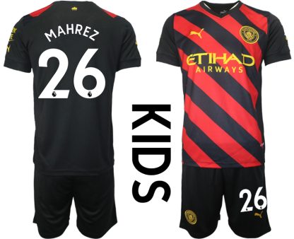Replika Otroški nogometni dresi kompleti Manchester City Gostujoči 22-23 Kratek Rokav + Kratke hlače MAHREZ 26