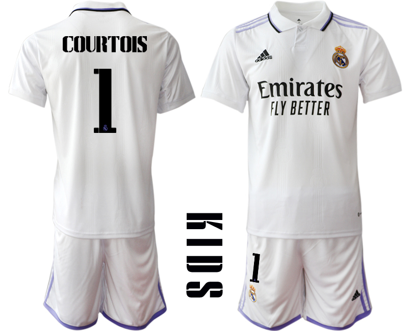 Replika Otroški nogometni dresi kompleti Real Madrid Domači 2023 Kratek Rokav + Kratke hlače COURTOIS 1