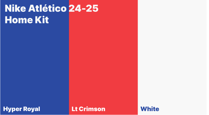 “Hyper Royal” je svetlo kraljevsko modra in je prva barva. To morda ne pomeni ničesar, lahko pa je tudi znak, da ima modra večjo vlogo kot običajno v domači opremi Nike Atlético Madrid 2024-25.
